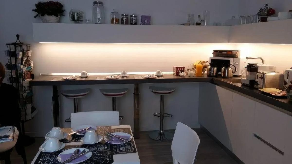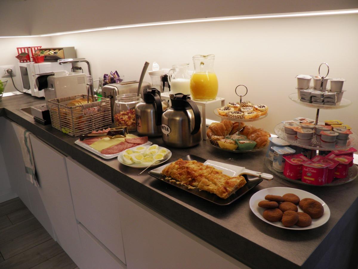 Preparo sempre un dolce fatto in casa, oltre a prodotti confezionati, marmellate, nutella, yougurt, cereali, frutta, succo d'arancia, pane, fette biscottate, tè, caffè espresso e caffè americano, oltre a latte caldo o cappuccino.